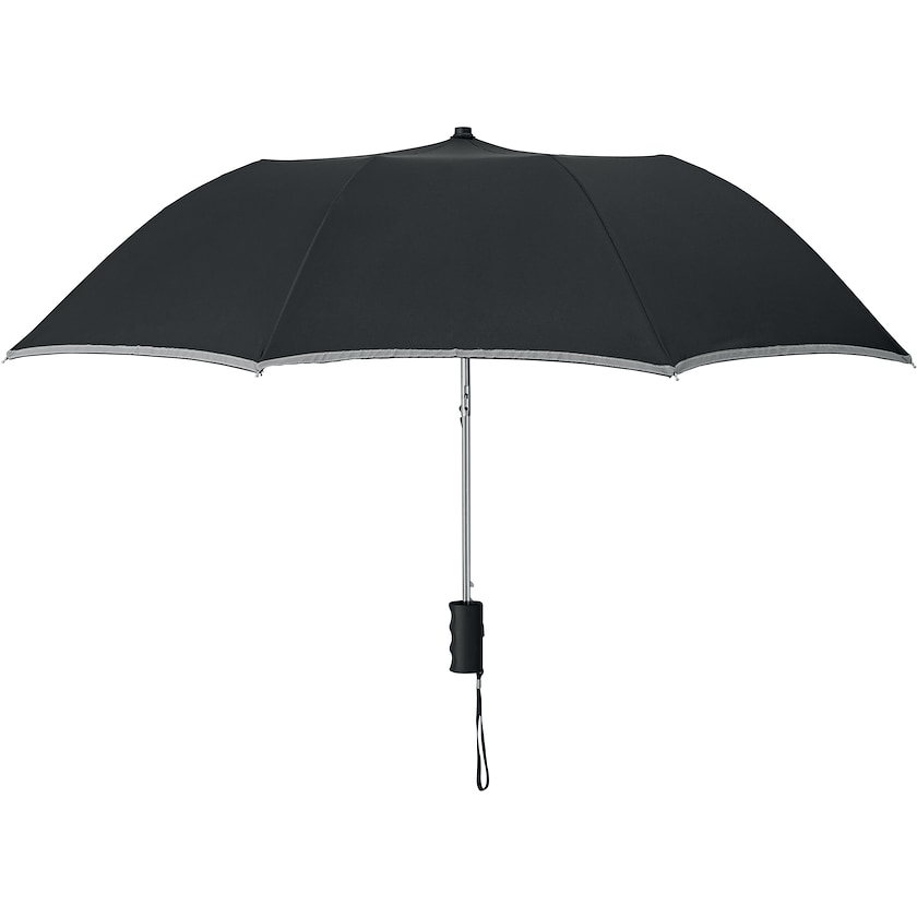 2-seksjonsparaply med reflekskant. Leveres i oppbevaringsfutteral som også har reflekser. Bestill paraply med refleks hos Axon Profil!
