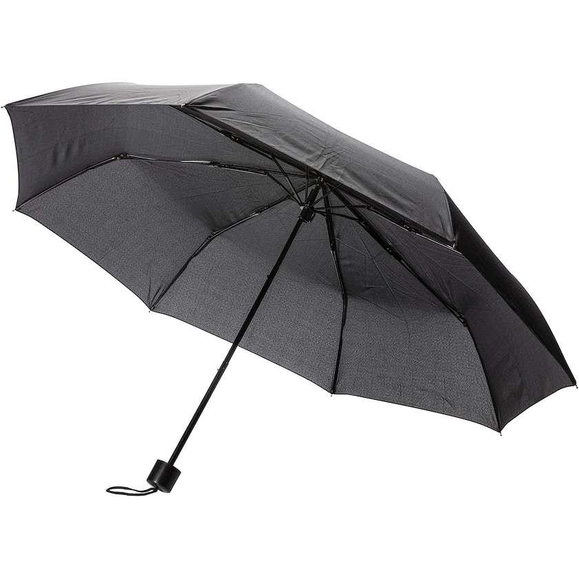 Unik paraply som har oppbevaringsfutteral som kan brettes ut til en bærepose. Paraplyen har stang av metall og ribber i glassfiber.