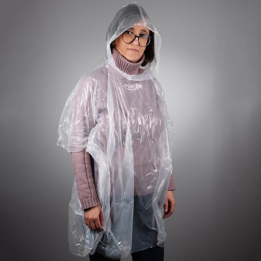 Rimelig regnponcho i oppbevaringsboks med stropp. Trykket gjøres på boksen. Perfekt å ha med i ryggsekken eller håndvesken.
