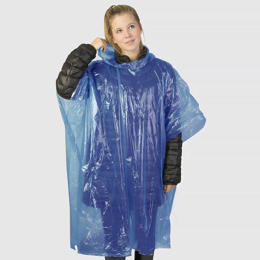 Regnponcho med hette som leveres i pose. Finnes i flere spennende farger. Merking gjøres med en digitaltrykket etikett som plasseres på posen.