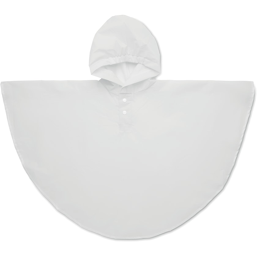 Regnponcho til barn. Passer til små barn i alderen 2 til 5 år. Har hette og knapper.