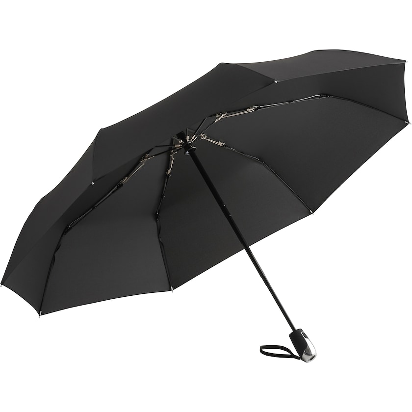 Sammenleggbar paraply som lukkes og åpnes automatisk. Paraplyen har veldig høy kvalitet og har et stormsikkert system med spiler av glassfiber. Stoffet er laget av resirkulert plast og er sertifisert i henhold til STANDARD 100 av OEKO-TEX®. Håndtaket har forkrommede metalldetaljer.