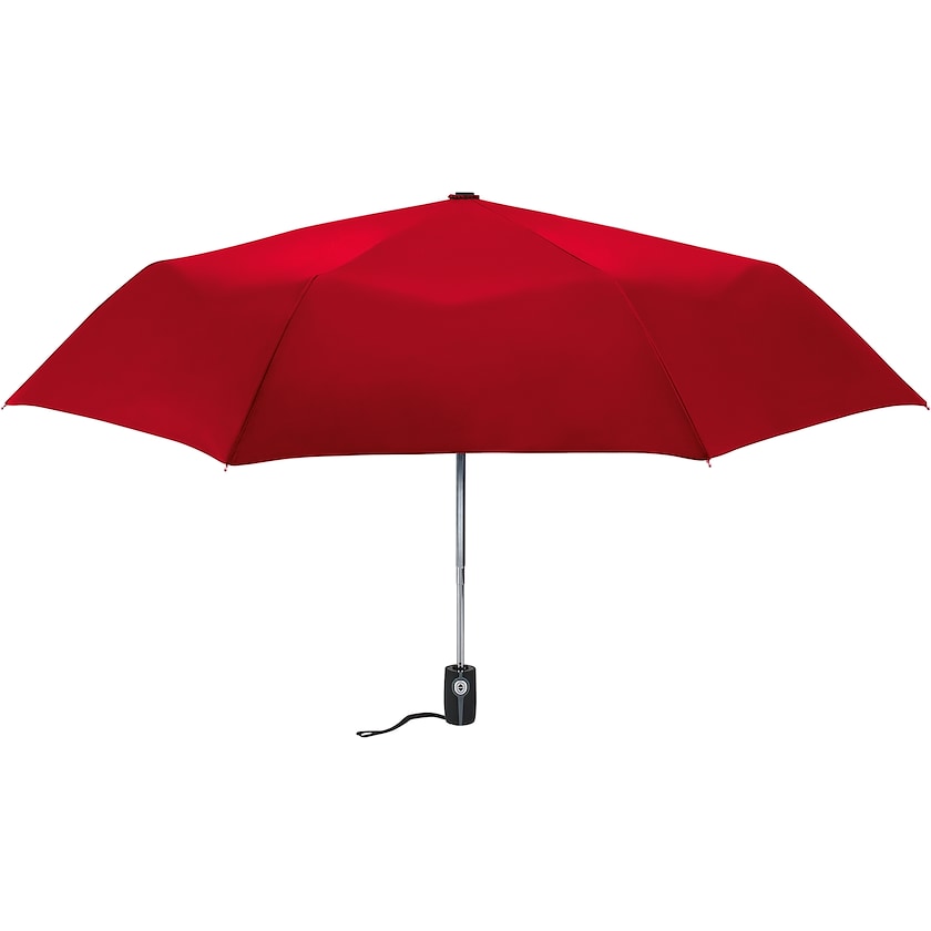 Stormsikker, sammenleggbar paraply som kan kjøpes fra 10 stk. Paraplyen er forsterket så det tåler kraftige vindkast. Håndtaket er gummiert. Paraplyen har tre seksjoner, og åpnes og lukkes automatisk.