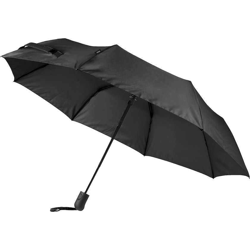 Miljøvennlig, sammenleggbar paraply fra Vinga. Duken er av RPET med paraplystang av metall og glassfiber. Automatisk åpning med knapp. Håndtaket har gummiering. Stormsikker.