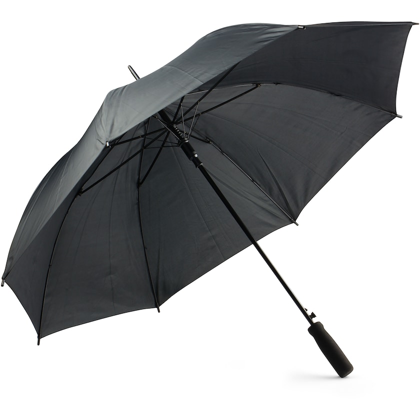 Rimelig ensfarget paraply med behagelig skumhåndtak. Paraplyen har automatisk åpning.