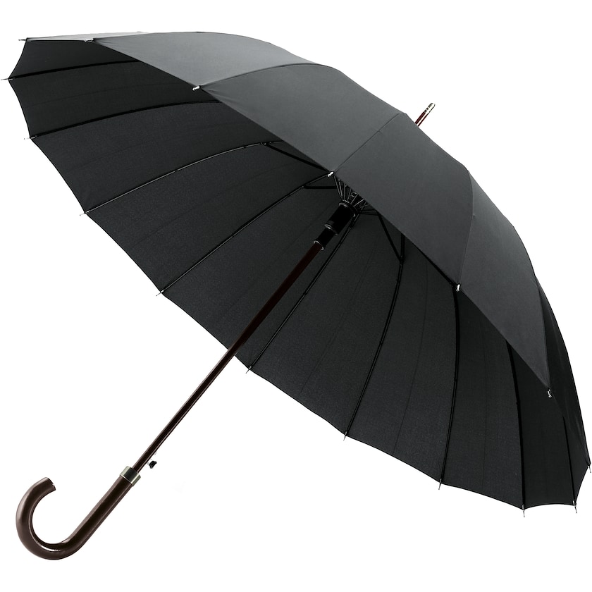 Automatisk paraply med 16 paneler. Paraplyen har et vakkert håndtak av tre. Takket være at paraplyen har så mange paneler er den ekstra stabil og holdbar.