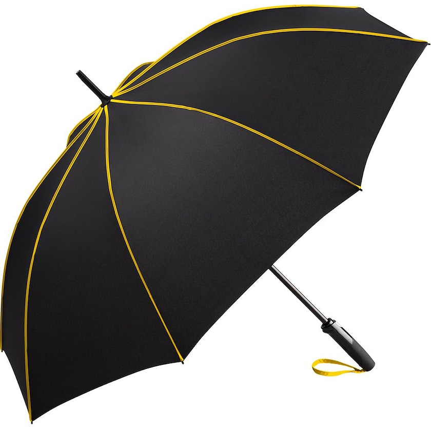 Paraply i høy kvalitet med karateristisk design. Paraplyen har en forsterket konstruksjon som tåler kraftig vind. Ribbene er laget av glassfiber og paraplystangen er laget av galvanisert stål. Paraplyen åpnes med et enkelt knappetrykk.