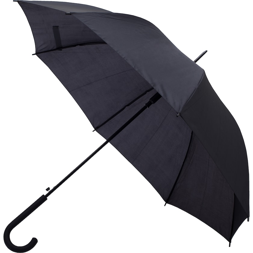 Automatisk paraply av metall med bøyd håndtak og behagelig EVA-materiale. Konstruksjonen er av metall og håndtaket av behagelig EVA-materiale.