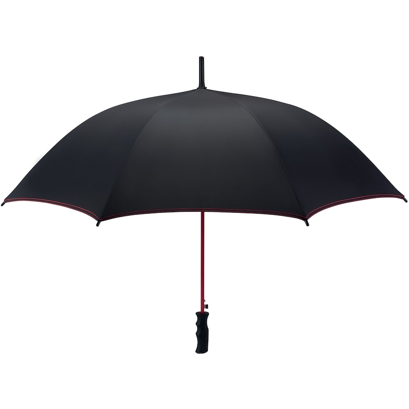 Stormsikker paraply med paraplyskaft av fiberglass. Paraply Tampa har sorte paneler og detaljer i kontrastfarger. Automatisk lukking. En stormparaply i høy kvalitet og med moderne design.