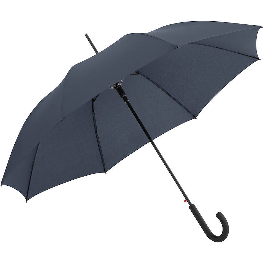 Klassisk paraply i høy kvalitet. Paraplyen kan åpnes automatisk med en karakteristisk rød knapp. Håndtaket er behagelig gummiert og pyntet med logoen til Knirps. Stoffet er vannavstøtende.