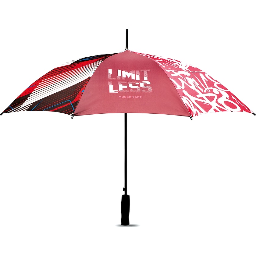 Miljøvennlig paraply med skjerm som trykkes helt etter egne ønsker. Jacksonville, har et rett håndtak av behagelig skumplast. Paraplyen åpnes automatisk. Paraplyskjermen trykkes etter egne ønsker og monteres deretter på rammen. Stoffet er produsert av RPET, dvs. resirkulerte PET-flasker. Last ned malen og designe en oppsiktsvekkende reklameparaply! Trykkprisen gjenspeiler bare trykk på utsiden av paraplyen.