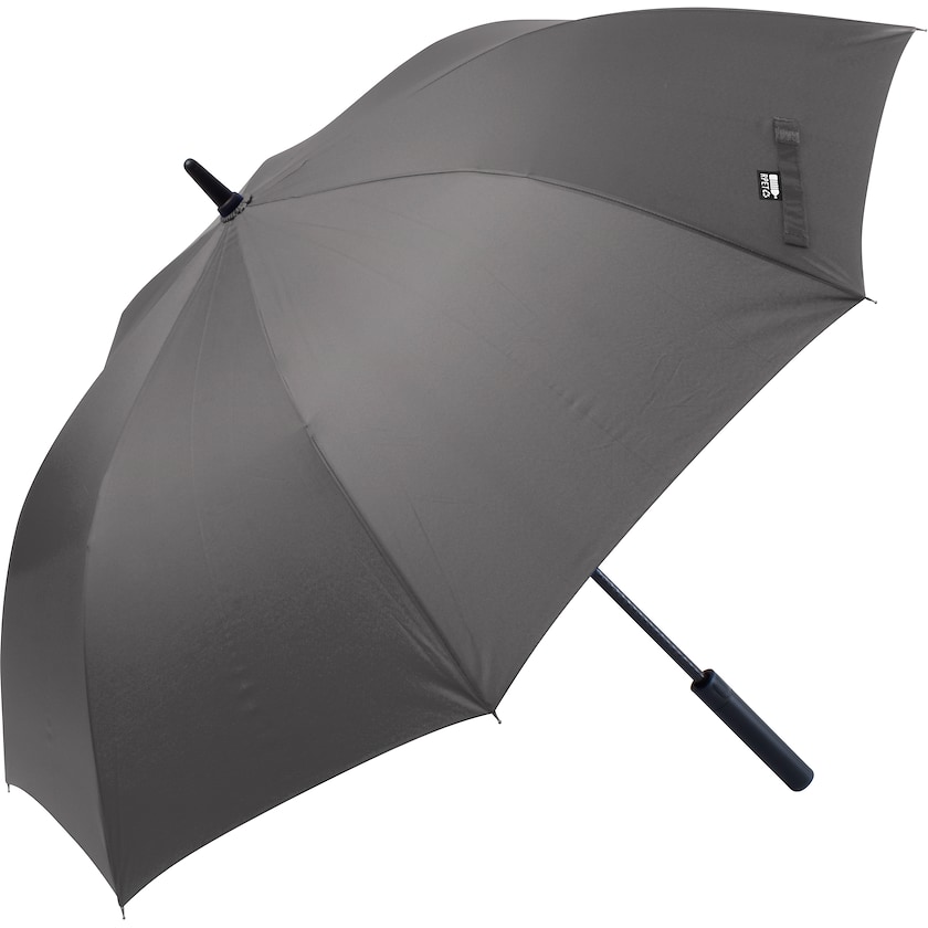 Miljøvennlig, stormsikker paraply med eget trykk. Paraplyen har stoff av miljøvennlig RPET, samt paraplystang og spiler av glassfiber.