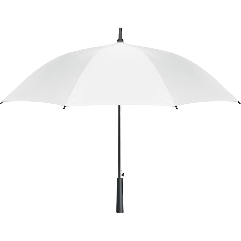 Stormparaply med rett håndtak med gummifinish. Martins åpnes automatisk og lukkes manuelt.