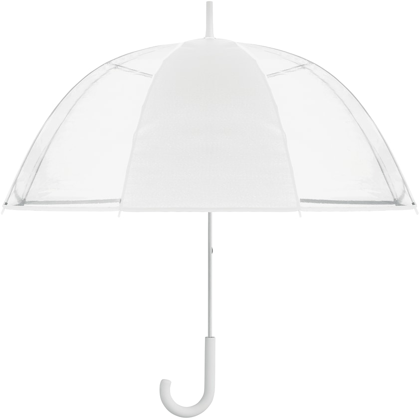Transparent paraply med én ensfarget seksjon. Håndtaket er av gummi. Manuell åpning og lukking. Trykket gjøres på den ensfargede seksjonen.