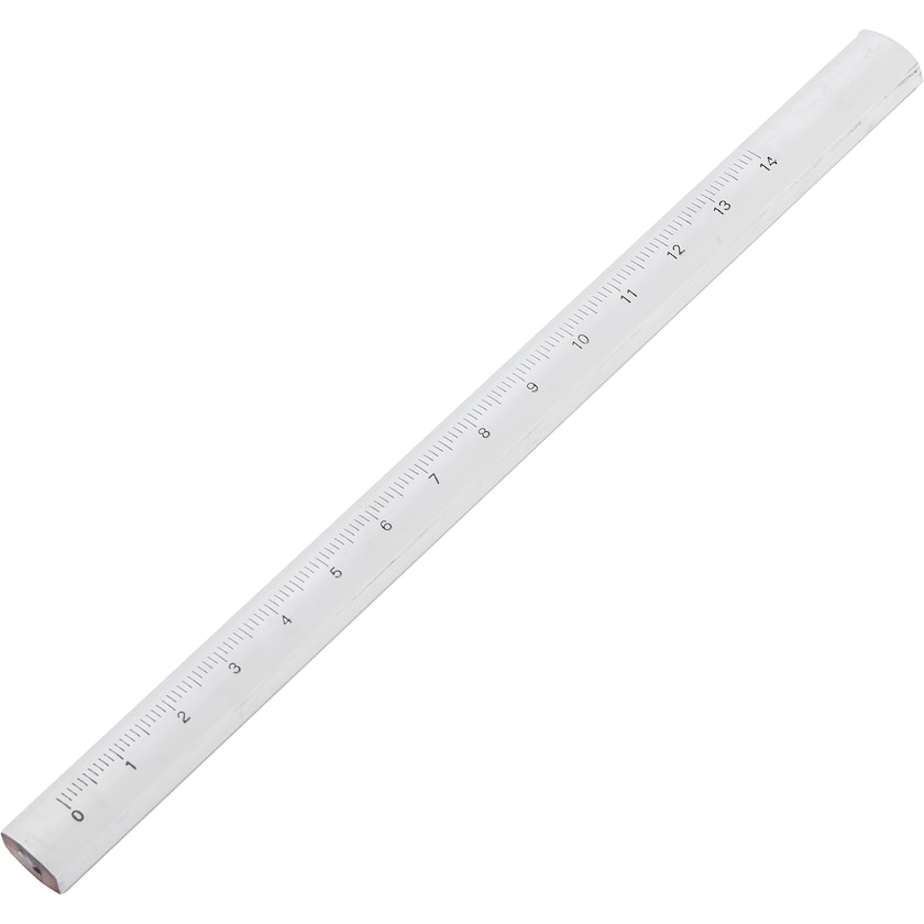 Snekkerpenn med metermål. Takket være metermålet fungerer pennen også som tommestokk. Blyanten har hardhet F.