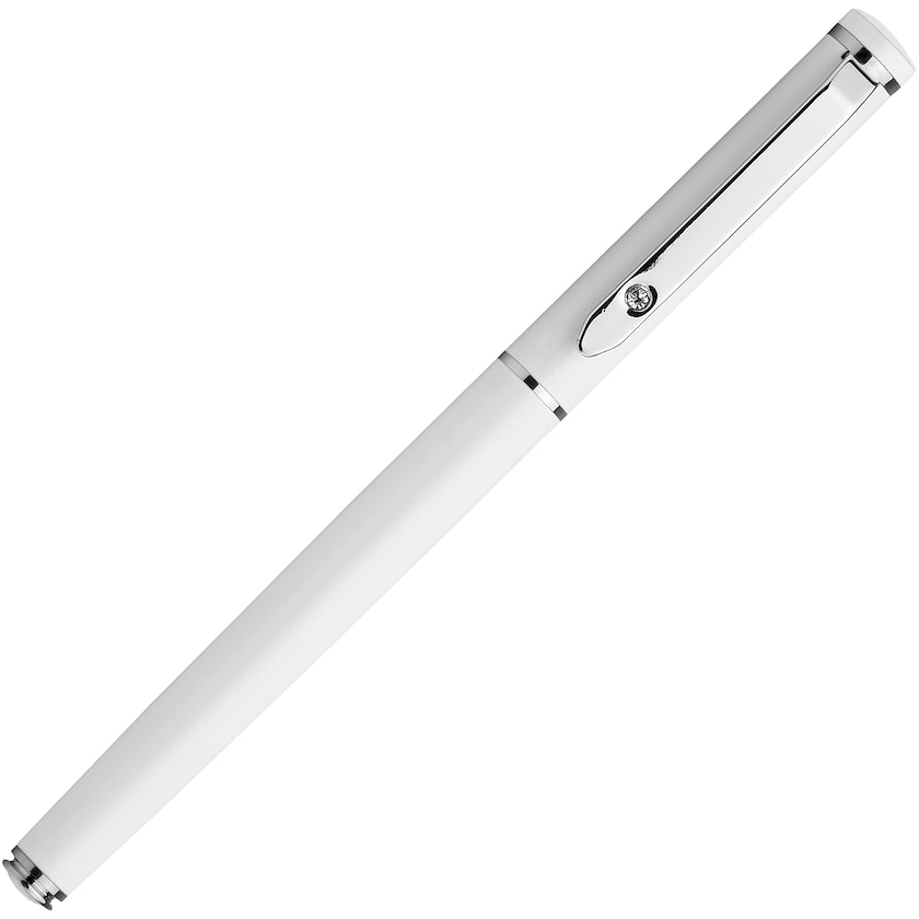 Metallpenn med rollerball-spiss. Pennen har blått blekk og leveres i en stilig svart pappeske. Merking han enten gjøres med trykk eller lasergravering.
