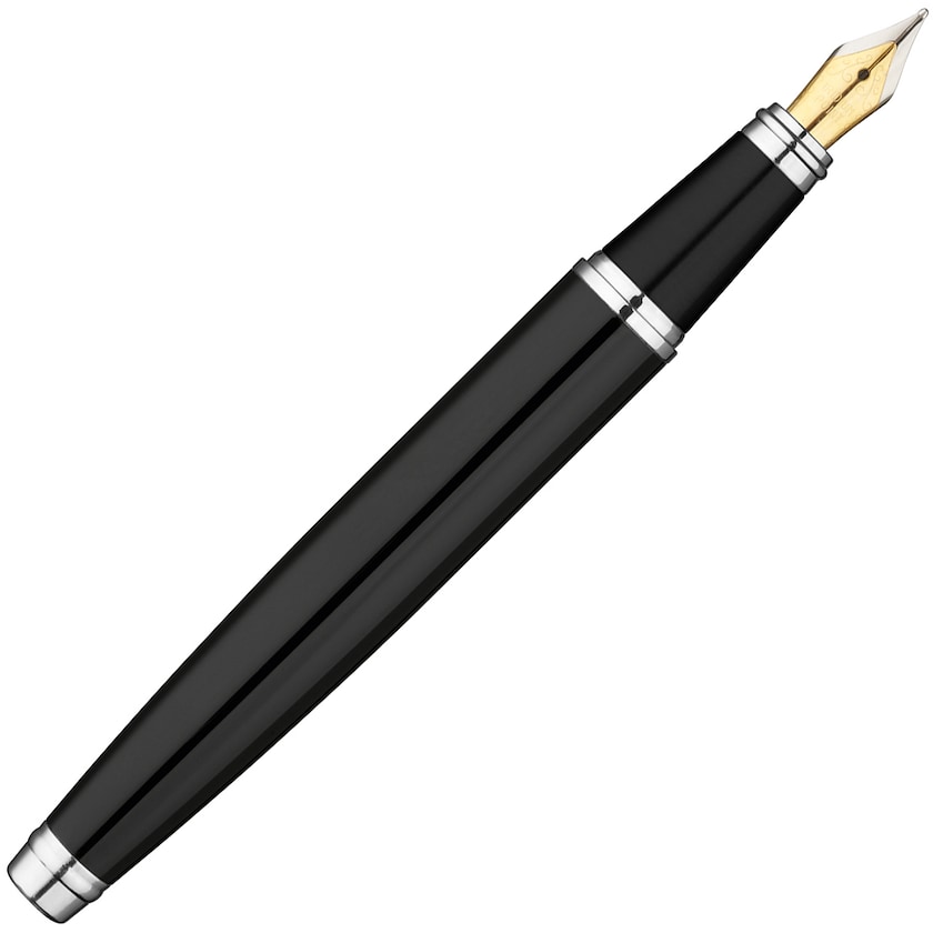 Eksklusiv fyllepenn med lokk. Sort pennekropp med detaljer i krom. Bestill fyllepenner med trykk hos Axon Profil!