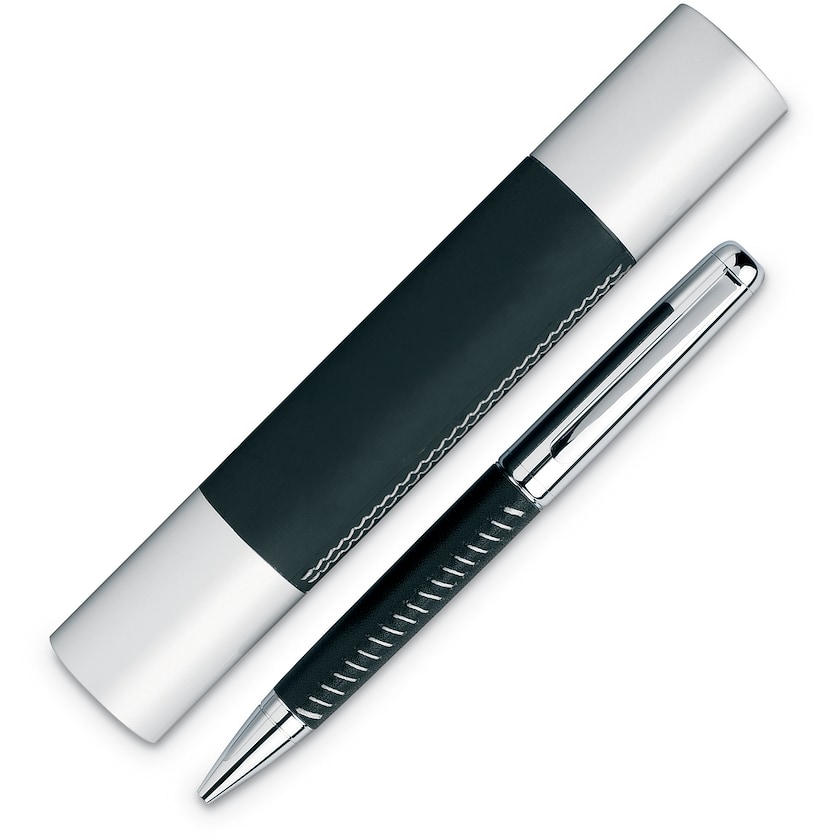 Metallpenn i pen gaveeske av aluminium. Lord har svart blekk, detaljer i krom og pennekropp av kunstlær.