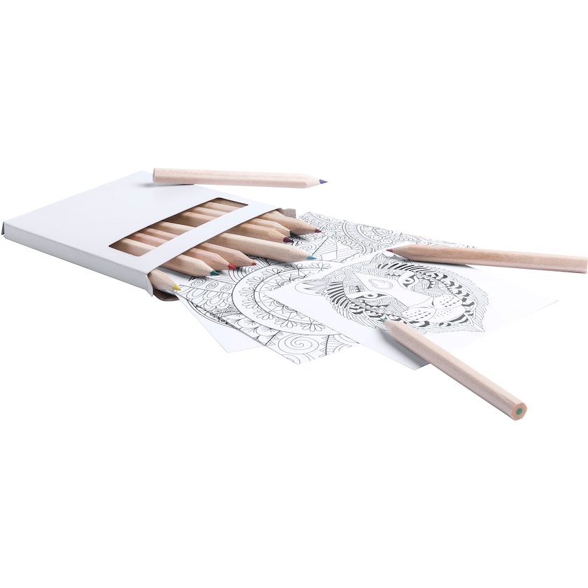 Sett med 12 stk fargeblyanter og 12 ark med såkalt mandala design. Et sett som gir avkobling og glede for både unge og gamle. Fargelegg og kjenn stillheten! Trykket skjer på innpakkingen og kan skje i maksimalt to farger.