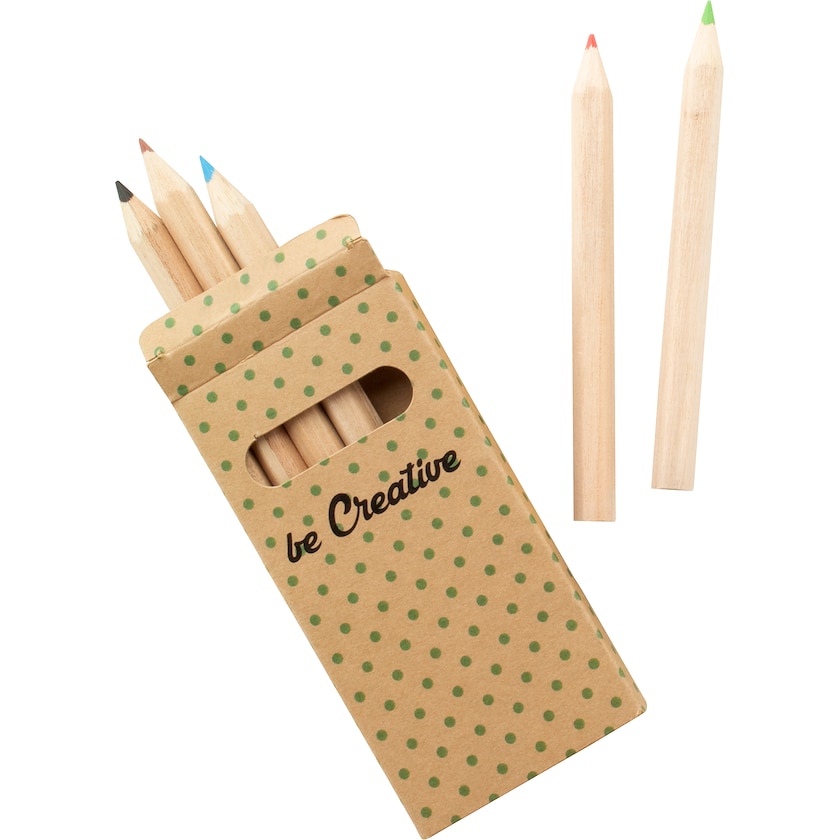 Fargepenner i en forpakning som trykkes helt etter dine ønsker. Monica, inneholder 6 stk. fargepenner i ulike farger. Hele den utvendige overflaten på forpakningen trykkes etter dine egne instruksjoner.