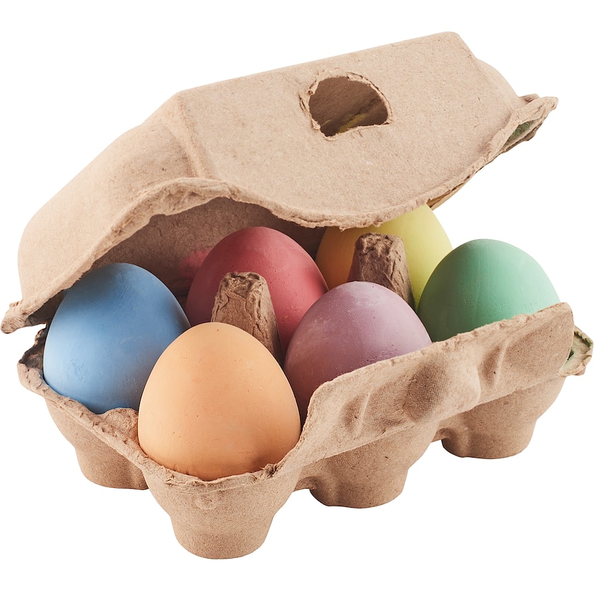 Stilig sett med 6 gatekritt i en eggekartong. En stilig gave! Bare ikke blande dem med ekte egg. Det er bare mulig med 1-fargetrykk.