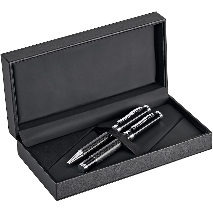 Eksklusivt sett med to penner av metall og karbonfiber. Settet inneholder en kulepenn og en fyllepenn. Kulepennen har vrimekanisme Pennene har svart blekk. Prisen på merkingen gjenspeiler merking på én av pennene.