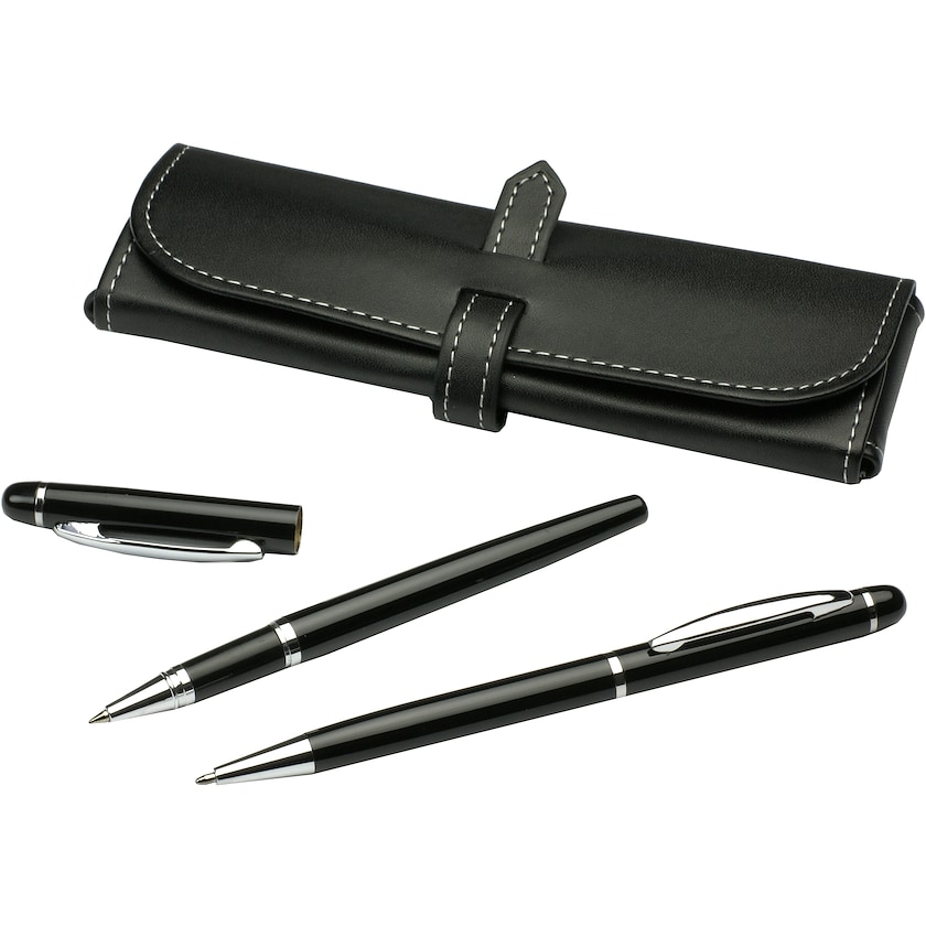 Unikt pennesett i pent futteral av kunstlær. Settet består av en blekkpenn og en kulepenn av metall. Pennene merkes med lasergravering og gaveesken kan trykkes på. Graveringsprisen er for merking på en av pennene.