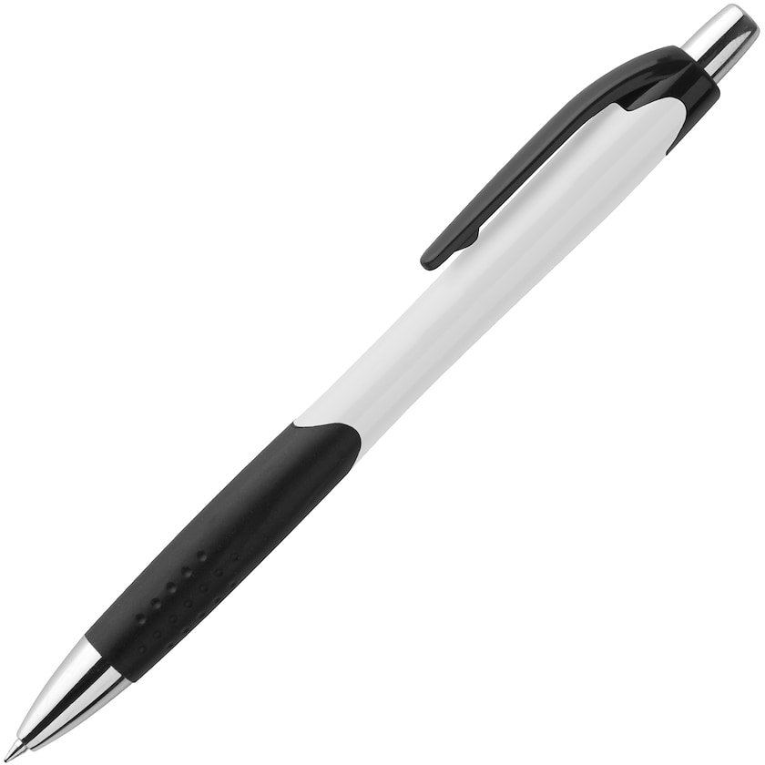 Reklamepenn med stort og behagelig gummigrep. Pennen har detaljer i krom og finnes i flere glade farger.