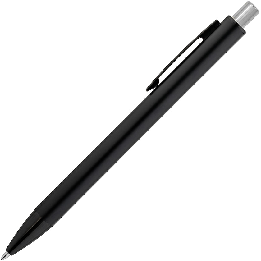 Reklamepenn av mattbørstet aluminium. Knappen har blank finish. Ved merking med lasergravering, får lasergraveringen samme farge som knappen.