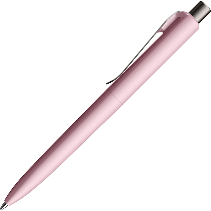 Penn fra Prodir med penneklips og knapp i grå grafittfarge. Pennekroppen har en behagelig gummiert overflate som gjør den behagelig å skrive med. 50 % av pennekroppen er laget av resirkulert ABS.