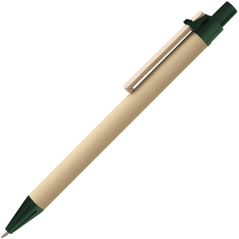 Reklamepenn med pennekropp av papir og klips av tre. Trykk kan skje både på pennekroppen og klipsen. En penn med naturlig skjønnhet! Kun opp til 3-fargers trykk er mulig.
