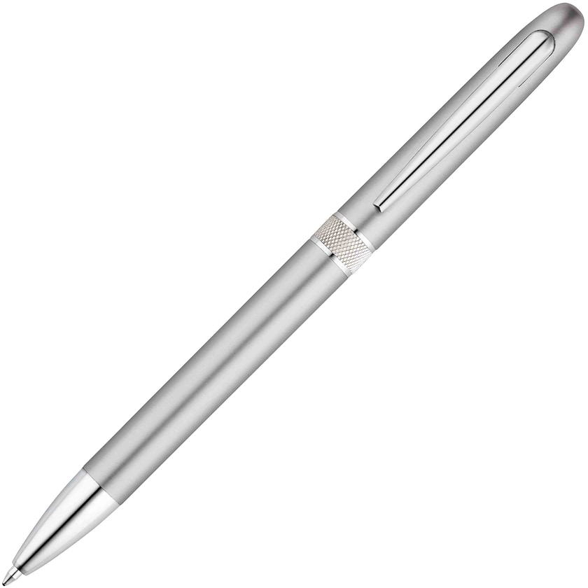 Mykt formet penn med detaljer i krom. Pennen har klips i metall og blått blekk.