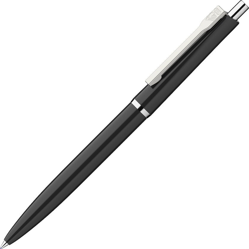 Stilrent designet reklamepenn med detaljer i krom. Kan fås enten med blått, rødt eller sort blekk.