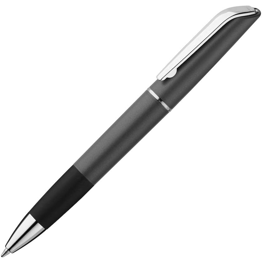Metallicfarget penn med grep og detaljer i krom.
