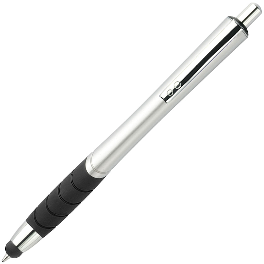 Med et enkelt trykk skifter denne penn fra å være kulepenn til å bli touchpenn. Pennen trykkes i maksimalt to farger. En genial penn til en bra pris!