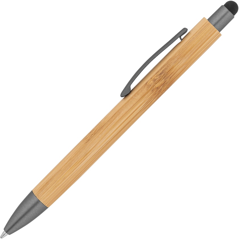 Touchpenn av bambus. Pennen har svart blekk. En vakker penn som ser dyrere ut enn den er.