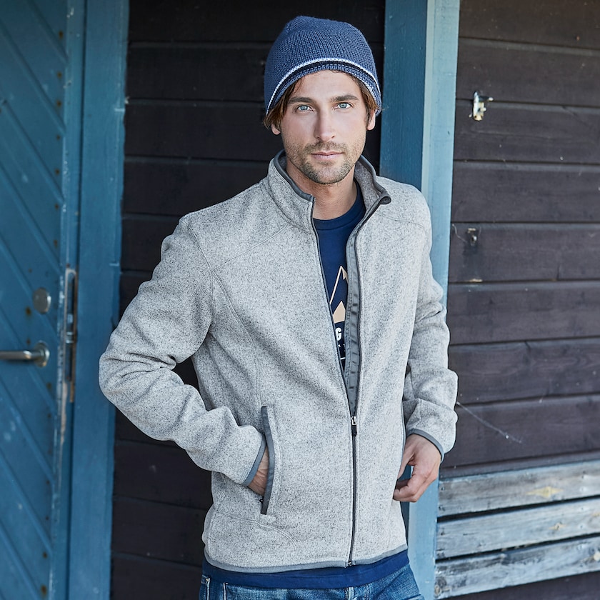 En rustikk, strikket fleecejakke med skreddersydd passform. Tee Jays Aspen, passer like bra som ytterplagg som mellomlag under en ytterjakke. Stoffet er melange-strikket som gir Aspen et utseende som er både kult og autentisk. Leveres enkeltpakket i plastpose. Finnes også som damemodell.