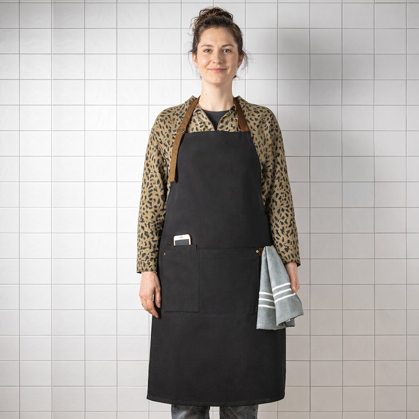 Forkle av bomullskanvas med metalldetaljer. Forkledet har tre smarte lommer og en hempe på siden der du f.eks. kan henge et kjøkkenhåndkle. Leveres i naturfarget pappkartong av miljømerket kartong.