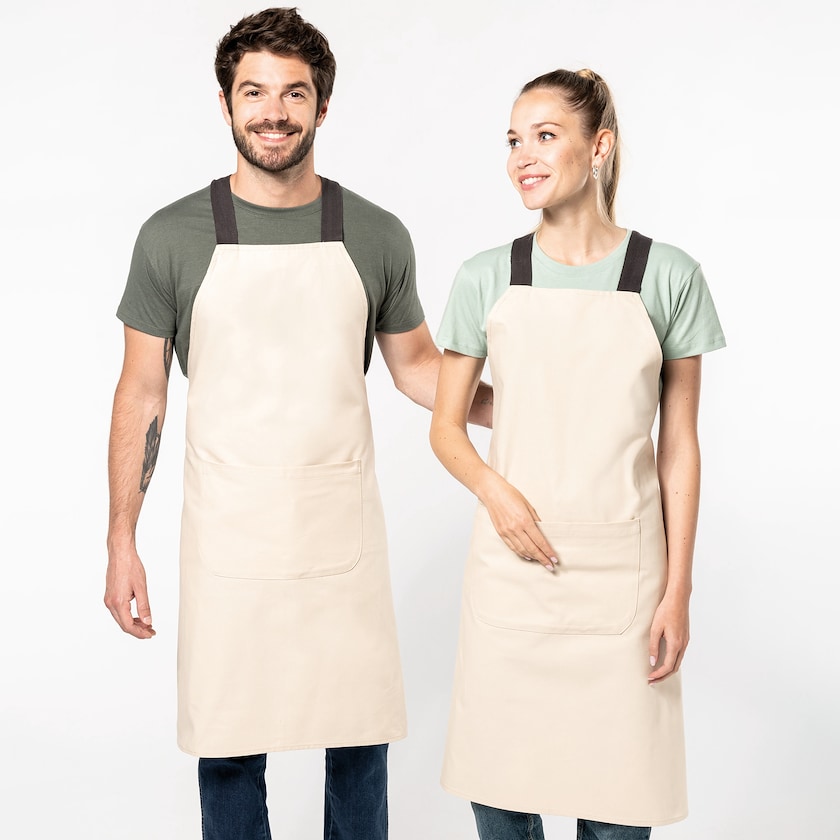 Forkle med solid stoff av 100% økologisk bomull. Stoffet er spesialbehandlet så det ser litt aldret ut. Behandlingsprosessen gjør at stoffets farge kan variere fra plagg til plagg. Lengden er 90 cm og bredden er 76 cm.