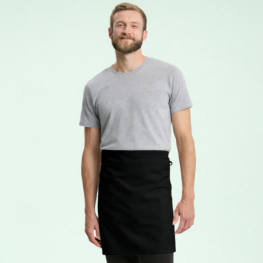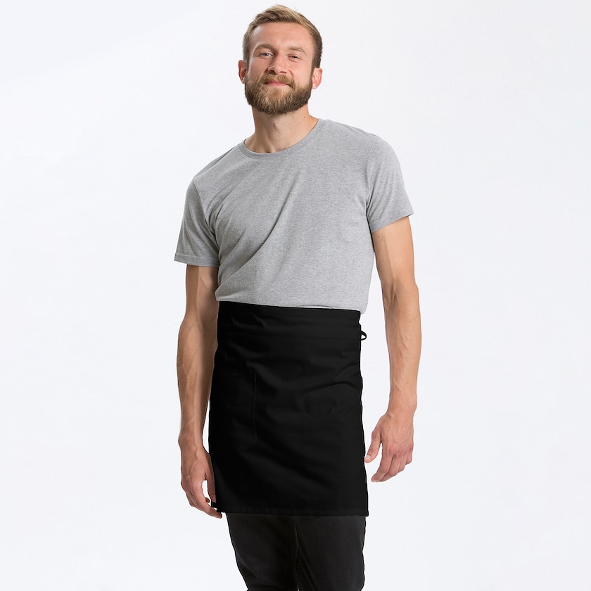 Kort forkle av økologisk og Fairtrade-sertifisert bomull. Sertifisert etter Fairtrade, EU Ecolabel, SA8000 og Oeko-tex. På forkleet finnes det en lomme. Forkleet er utstyrt med etiketter som viser at det er Fairtrade-sertifisert og kommer fra Neutral.