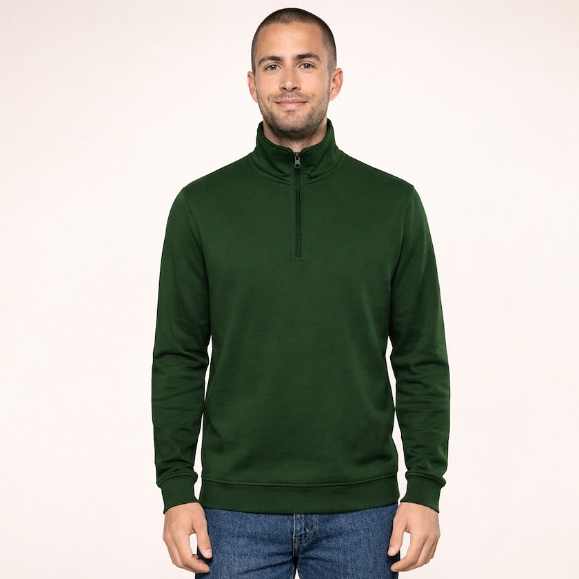 Trendy sweatshirt med kort glidelås i halsen. Finnes i flere fine farger. Leveres stykkforpakket i plastpose.