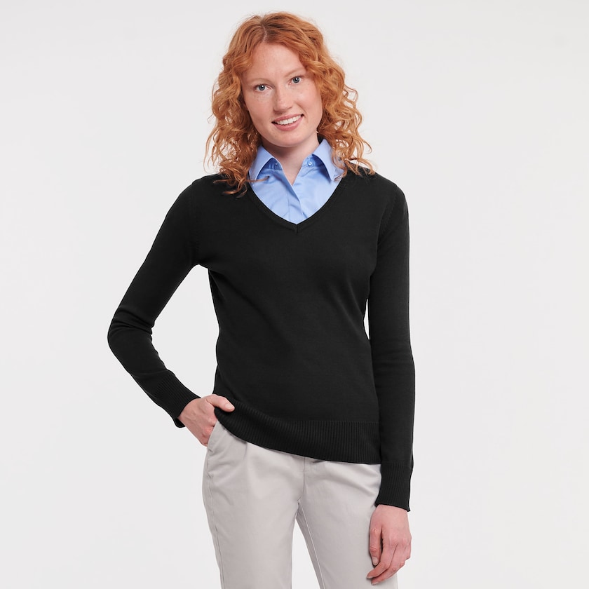 Elegant strikket trøye i damemodell. Genseren har v-hals og er laget av bomullsblandingen Easy Care. Den kombinerer bomullens letthet med akrylens mykhet. Genseren kan tørkes tørketrommel og vaskes på 40 grader. En elegant genser for deg som ønsker et mer velkledd alternativ. Leveres individuelt pakket i plastpose. Finnes også som herremodell.