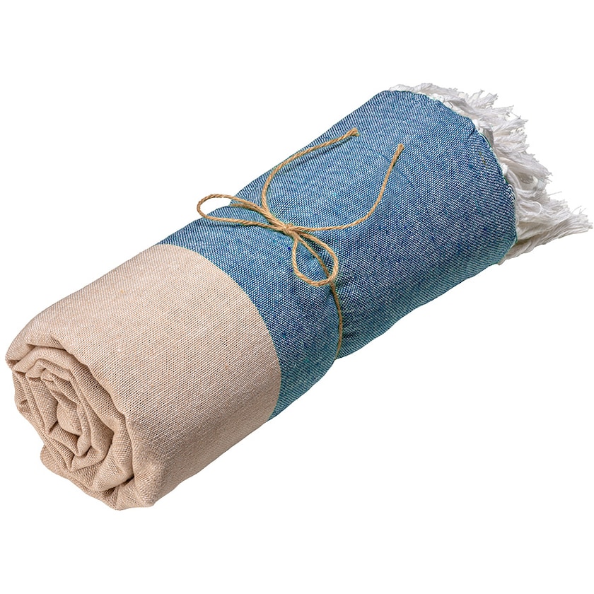 Tofarget strandhåndkle av et 180 grams stoff av resirkulert bomull. Perfekt til late dager på stranden.