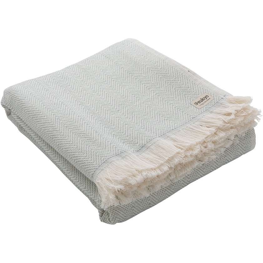 Luksuriøs hamamhåndkle med mange bruksområder. Kosaka, er laget av en blanding av OEKO-TEX sertifisert bomull og resirkulert bomull. Stoffet har høy sugeevne selv om det er tynt. Håndkledet fungerer like bra som piknikteppe, pledd eller bordduk. Produsert i Portugal.