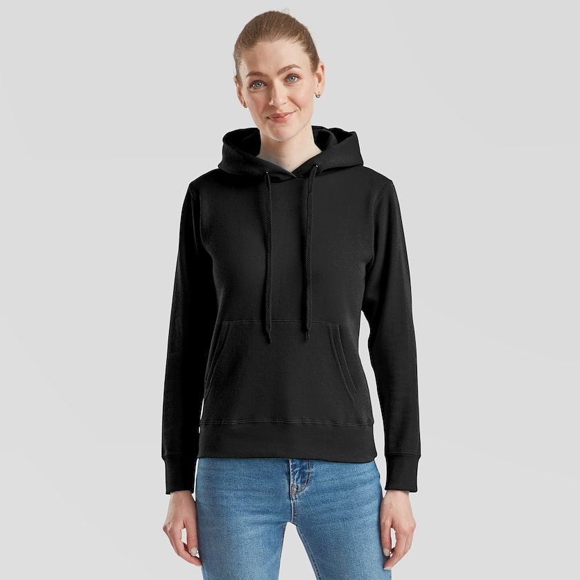 Figursydd hettegenser bare for damer Lady-Fit Classic Hooded Sweat er en klassisk hettegenser i et litt mer figursydd og feminint utseende. Leveres individuelt pakket i plastpose. Finnes også som herremodell.
