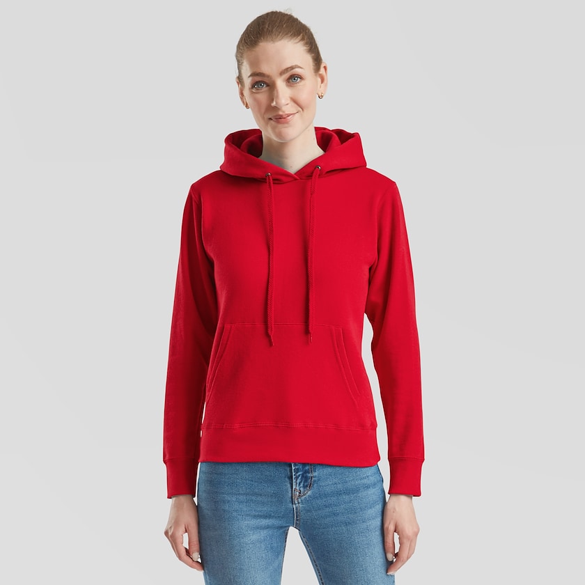 Figursydd hettegenser bare for damer Lady-Fit Classic Hooded Sweat er en klassisk hettegenser i et litt mer figursydd og feminint utseende. Leveres individuelt pakket i plastpose. Finnes også som herremodell.