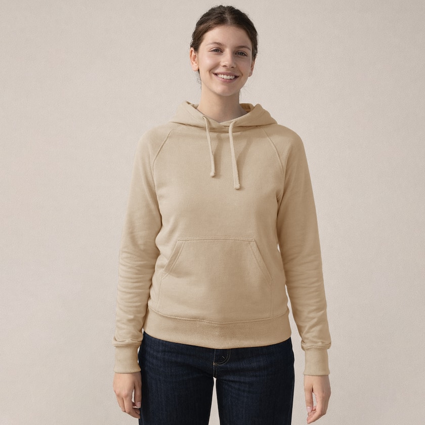 Hettegenser for kvinner laget av 100% økologisk og Fairtrade-merket bomull. Hettegenseren har det klassiske utseendet med et feminint snitt. Sertifisert etter krav fra Fairtrade, EU Ecolabel, SA8000 og Oeko-tex. Leveres enkeltpakket i plastpose. Finnes også som herremodell.