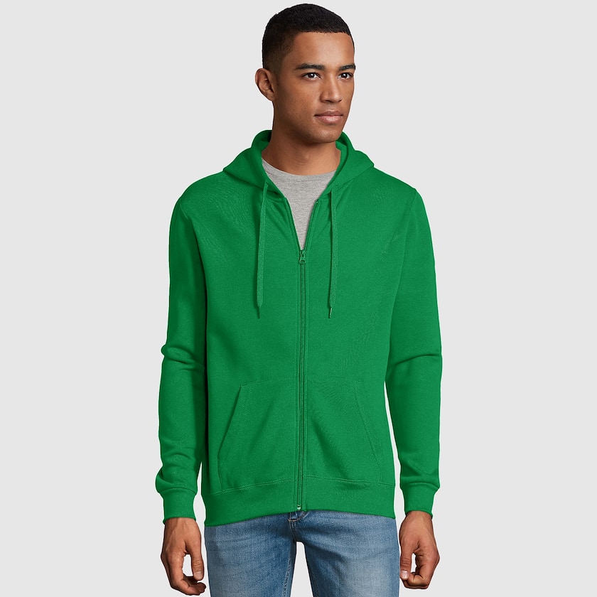 Hettegenser med trykk i unisex-modell med lang glidelås. Genseren er en unisex-modell, og er produsert i 260 grams stoff av 50% bomull og 50% polyester. Kan bestilles fra bare 5 stk.