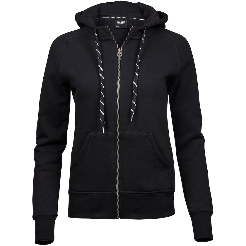 Figursydd hettegenser til dame av ypperste kvalitet. Genseren er laget av 30% polyester og 70% egyptisk bomull av eksklusiv 3-trådskvalitet. Stoffet er mykere enn vanlig og har en lekker finish. Leveres individuelt pakket i plastpose. Finnes også som herremodell.