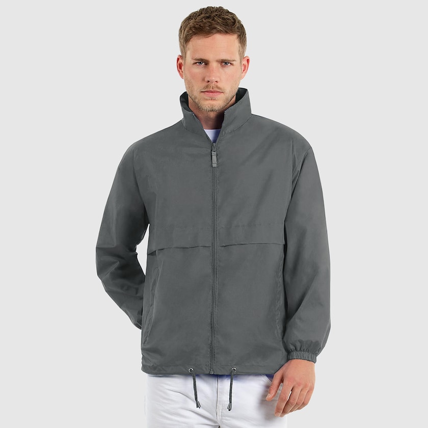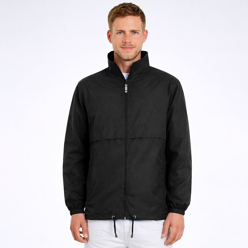 Vattert vindjakke med trykk til en riktig bra pris. Smart unisexjakke med gjemt hette i kragen. Både hetten og midjen kan justeres. Utsiden er av nylon og foret av polyester.